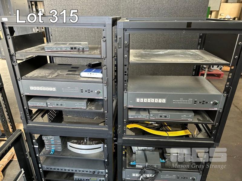 3 x DATA RACK FRAMES, 12RU 1 x DATA RACK FRAME, 12RU WITH DOOR (NO KEY) WITH CONTENTS INC. EXTRON & AMX EQUIPMENT