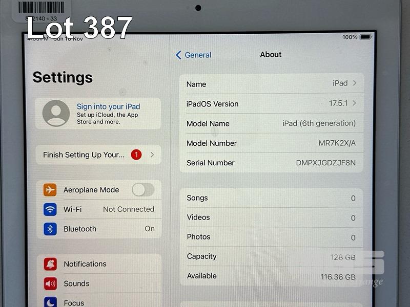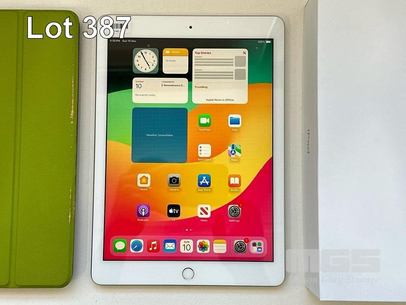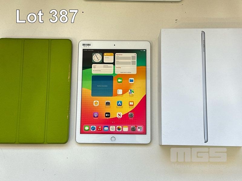APPLE iPAD 6TH GEN, 128GB, Wi-Fi, SILVER, MODEL MR7K2X/A, A1893 WITH COVER (NO CABLE, NO CHARGER) S/N:DMPXJGDZJF8N