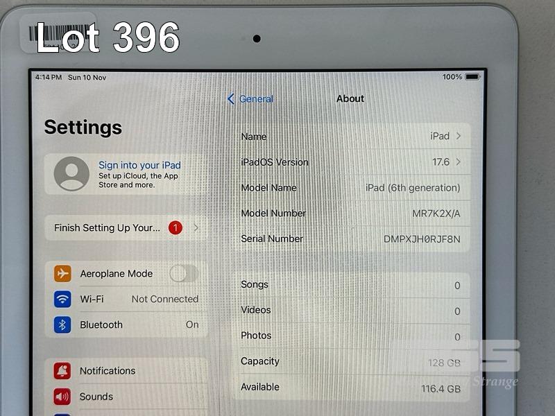 APPLE iPAD 6TH GEN, 128GB, Wi-Fi, SILVER, MODEL MR7K2X/A, A1893 WITH COVER (NO CABLE, NO CHARGER) S/N:DMPXJH0RJF8N