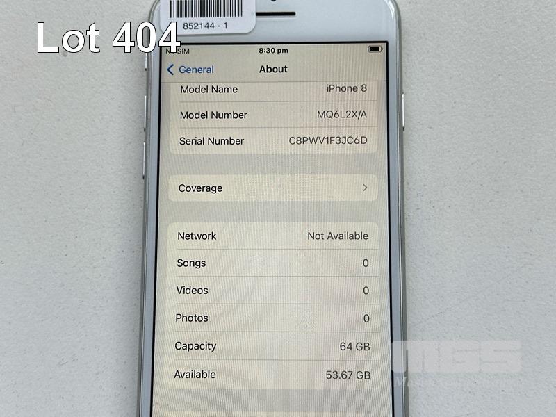 APPLE iPHONE 8, 64GB, SILVER, MODEL MQ6L2X/A, BATTERY HEALTH 89% (NO CABLE, NO CHARGER) S/N:C8PWV1F3JC6D