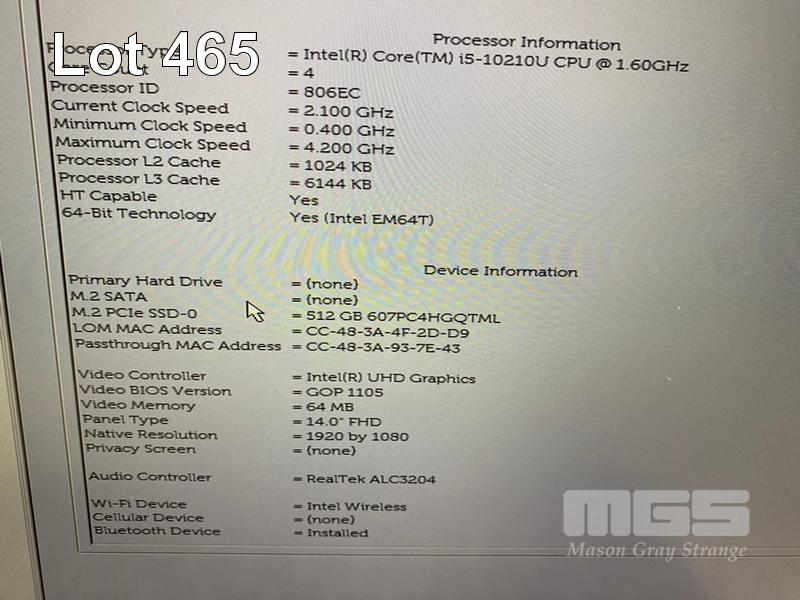 LAPTOP, DELL LATITUDE 5410, CORE i5 10210U (10TH GEN) @ 1.6GHz, 8GB DDR4 RAM, 512GB NVMe M.2 SSD, 14" WIDESCREEN (1920x1080), INTEL UHD GRAPHICS, Wi-Fi, BLUETOOTH, WINDOWS 11 HOME INSTALLED (NO POWER SUPPLY) (NOTE: MARKS ON SCREEN, BAD CASING PEELING) S/N:HX8H063