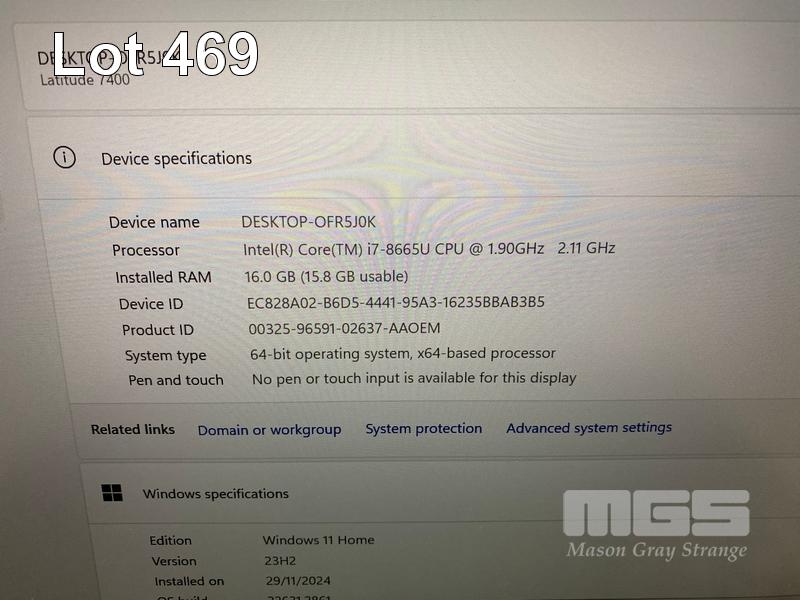 LAPTOP, DELL LATITUDE 7400, CORE i7 8665U (8TH GEN) @ 1.9GHz, 16GB DDR4 RAM, 512GB NVMe M.2 SSD, 14" WIDESCREEN (1920x1080), INTEL UHD GRAPHICS 620, Wi-Fi, BLUETOOTH, WINDOWS 11 HOME INSTALLED & POWER SUPPLY S/N:CD9K0Z2