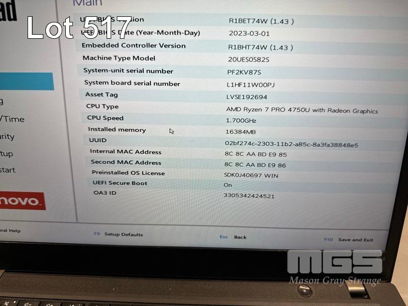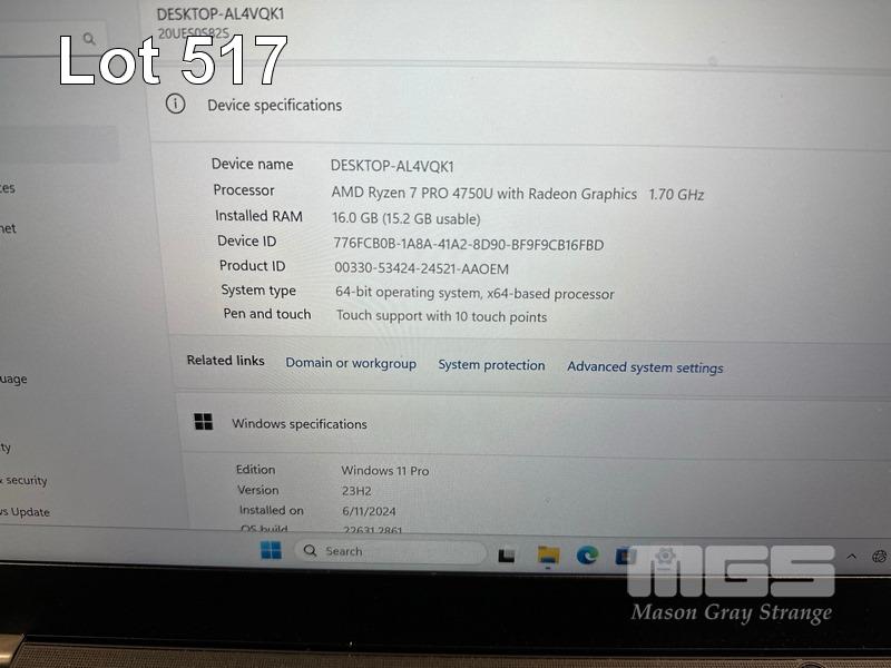 LAPTOP, LENOVO THINKPAD T14 Gen1, TYPE 20UE, AMD RYZEN 7 PRO 4750U @ 1.7GHz, 16GB DDR4 RAM, 512GB NVMe M.2 SSD, 14" TOUCHSCREEN (1920x1080), Wi-Fi, BLUETOOTH, WINDOWS 11 PRO INSTALLED (NO USB-C POWER SUPPLY) (NOTE: FAN ERROR, FAULTY USB PORT, DAMAGED "ALT" KEY, MARKS ON SCREEN) S/N:PF2KV87S