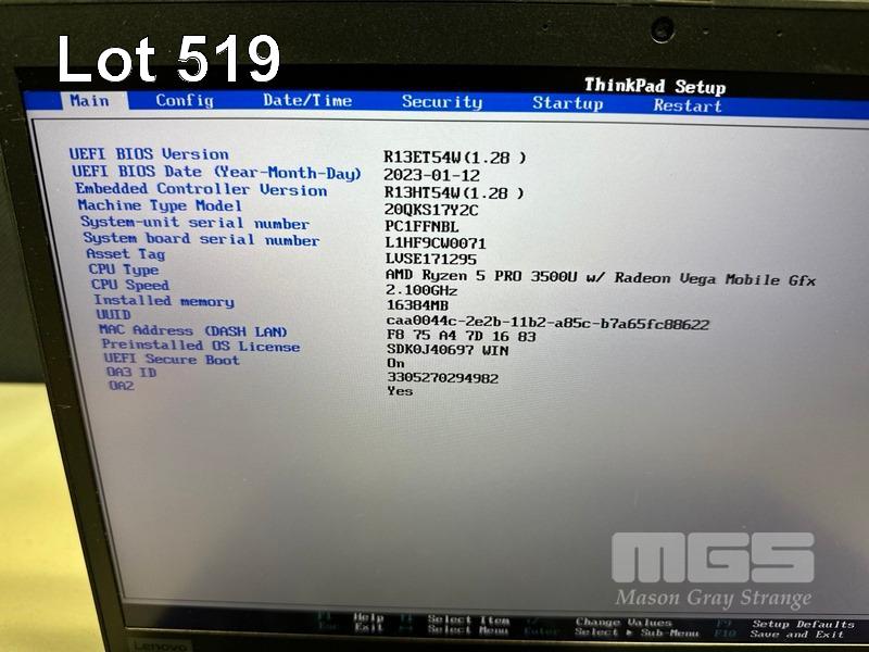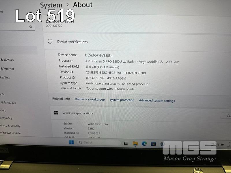 LAPTOP, LENOVO THINKPAD T495s, TYPE 20QK, AMD RYZEN 5 PRO 3500U @ 2.1GHz, 16GB DDR RAM, 512GB NVMe M.2 SSD, 14" TOUCHSCREEN (1920x1080), Wi-Fi, BLUETOOTH, WINDOWS 11 PRO INSTALLED (NO USB-C POWER SUPPLY) (NOTE: USB PORT & TOUCHPOINT FAULTY, MARKS ON SCREEN) S/N:PC1FFNBL