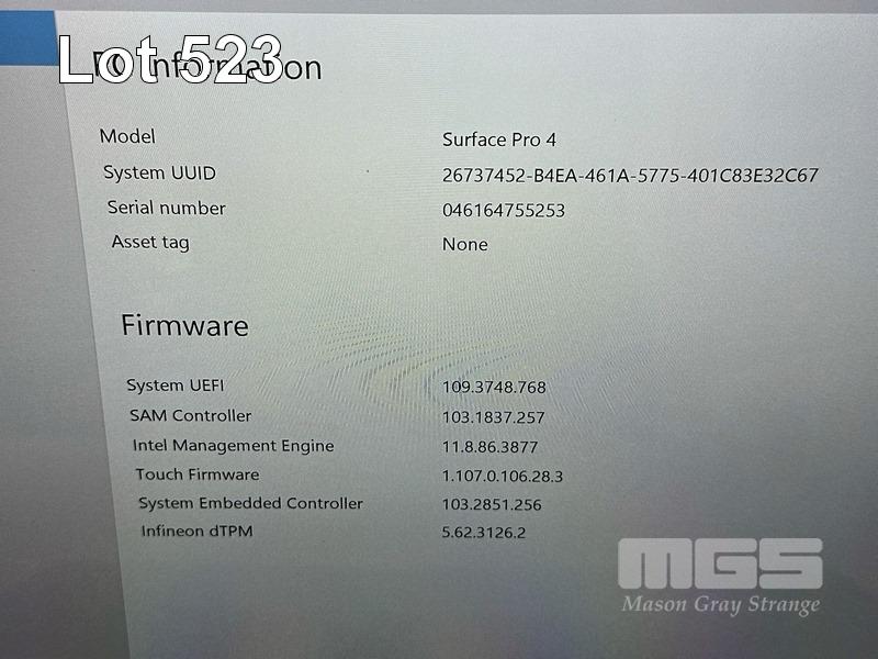 TABLET PC, MICROSOFT SURFACE PRO 4, MODEL 1724, CORE i7 6650U (6TH GEN) @ 2.2GHz, 16GB RAM, 256GB SSD, 12.3" TOUCHSCREEN (2736x1824), INTEL HD GRAPHICS 520, Wi-Fi, BLUETOOTH, WINDOWS 10 PRO INSTALLED, KEYBOARD TYPE COVER & POWER SUPPLY S/N:046164755253