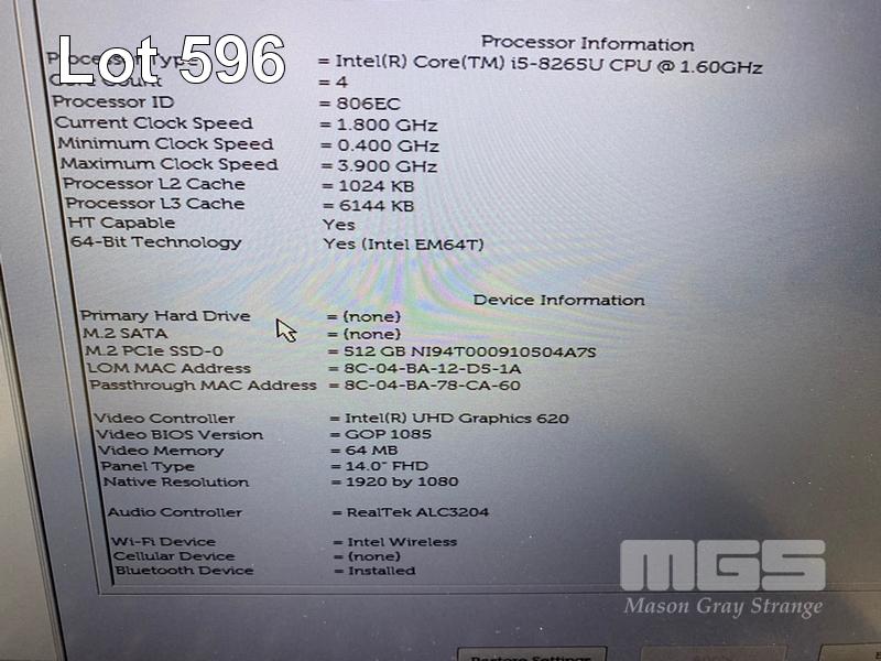LAPTOP, DELL LATITUDE 5400, CORE i5 8265U (8TH GEN) @ 1.6GHz, 8GB DDR4 RAM, 512GB NVMe M.2 SSD, 14" WIDESCREEN (1920x1080), INTEL UHD GRAPHICS 620, Wi-Fi, BLUETOOTH, WINDOWS 11 HOME INSTALLED & POWER SUPPLY (NOTE: MARKS ON SCREEN) S/N:26QX2X2
