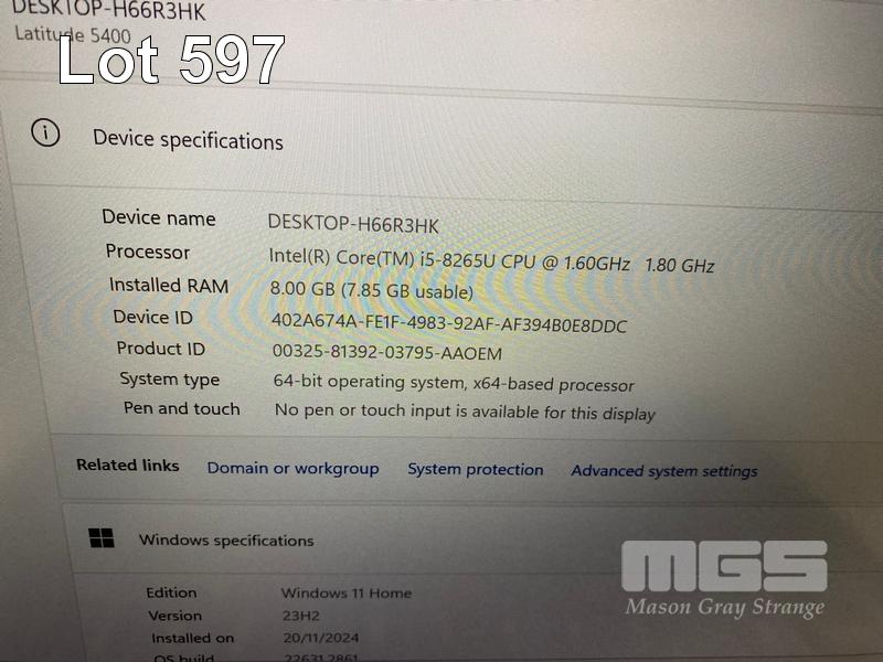 LAPTOP, DELL LATITUDE 5400, CORE i5 8265U (8TH GEN) @ 1.6GHz, 8GB DDR4 RAM, 512GB NVMe M.2 SSD, 14" WIDESCREEN (1920x1080), INTEL UHD GRAPHICS 620, Wi-Fi, BLUETOOTH, WINDOWS 11 HOME INSTALLED & POWER SUPPLY (NOTE: MARKS ON SCREEN) S/N:HW883X2