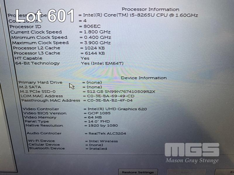 LAPTOP, DELL LATITUDE 5400, CORE i5 8265U (8TH GEN) @ 1.6GHz, 8GB DDR4 RAM, 512GB NVMe M.2 SSD, 14" WIDESCREEN (1920x1080), INTEL UHD GRAPHICS 620, Wi-Fi, BLUETOOTH, WINDOWS 11 HOME INSTALLED & POWER SUPPLY (NOTE: MARKS ON SCREEN) S/N:7FV4ZY2