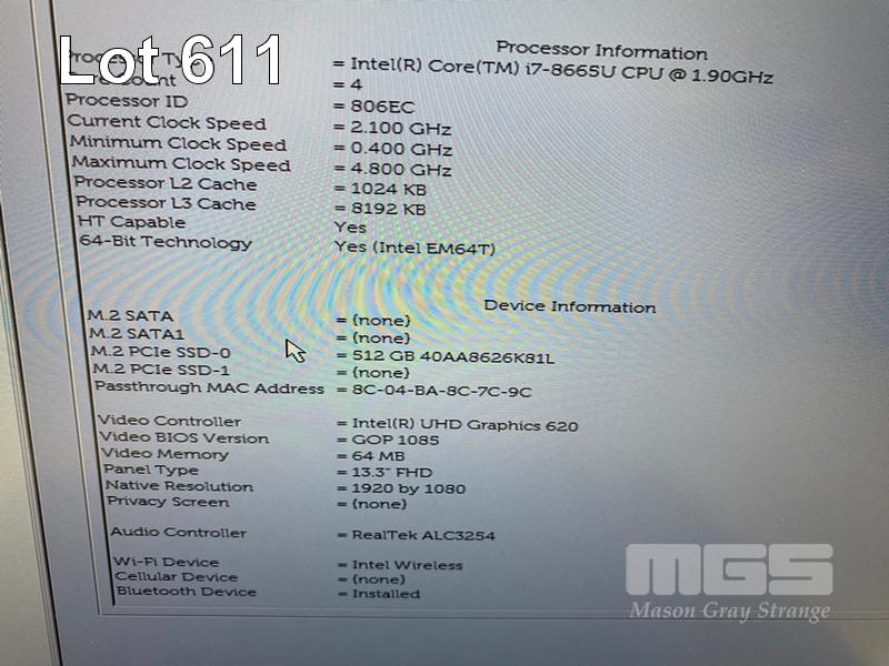 LAPTOP, DELL LATITUDE 7300, CORE i7 8665U (8TH GEN) @ 1.9GHz, 16GB DDR4 RAM, 512GB NVMe M.2 SSD, 13.3" WIDESCREEN (1920x1080), INTEL UHD GRAPHICS 620, Wi-Fi, BLUETOOTH, WINDOWS 11 HOME INSTALLED (NO POWER SUPPLY) (NOTE: MINOR CASING PEELING, RUBBER PAD LOOSE ON BOTTOM OF LAPTOP) S/N:DYG56Y2