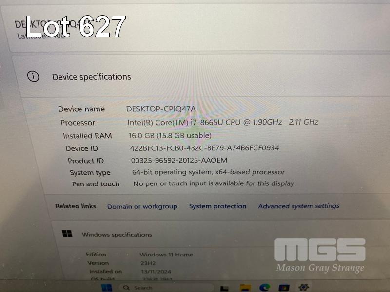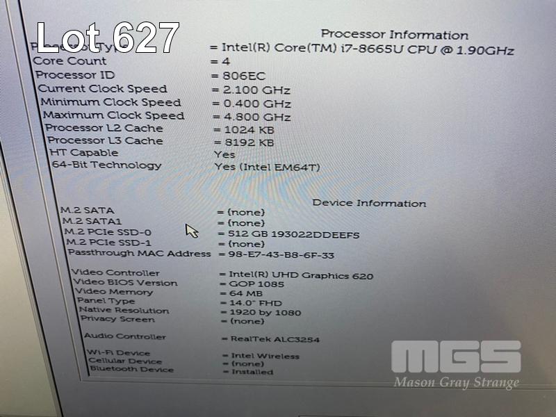 LAPTOP, DELL LATITUDE 7400, CORE i7 8665U (8TH GEN) @ 1.9GHz, 16GB DDR4 RAM, 512GB NVMe M.2 SSD, 14" WIDESCREEN (1920x1080), INTEL UHD GRAPHICS 620, Wi-Fi, BLUETOOTH, WINDOWS 11 HOME INSTALLED (NO POWER SUPPLY) (NOTE: RUBBER PAD PART LOOSE ON BOTTOM OF LAPTOP) S/N:2MFC2Z2
