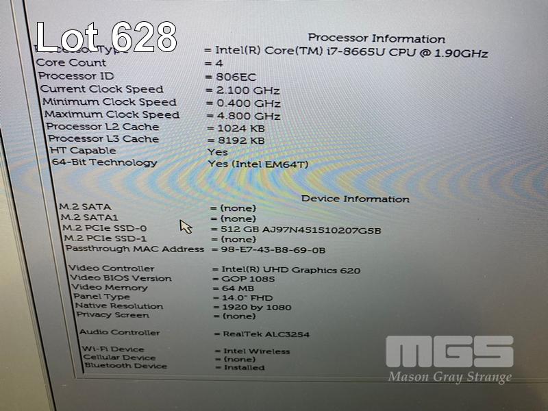 LAPTOP, DELL LATITUDE 7400, CORE i7 8665U (8TH GEN) @ 1.9GHz, 16GB DDR4 RAM, 512GB NVMe M.2 SSD, 14" WIDESCREEN (1920x1080), INTEL UHD GRAPHICS 620, Wi-Fi, BLUETOOTH, WINDOWS 11 HOME INSTALLED (NO POWER SUPPLY) (NOTE: MINOR MARKS ON SCREEN, BATTERY NOT HOLDING CHARGE) S/N:GK9K0Z2