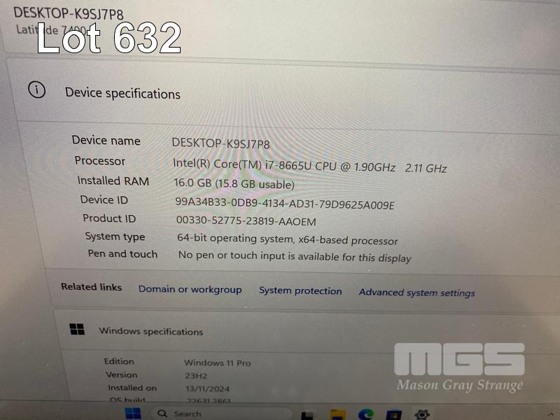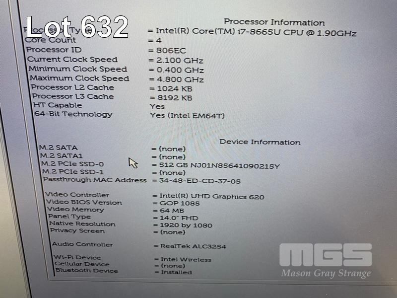 LAPTOP, DELL LATITUDE 7400, CORE i7 8665U (8TH GEN) @ 1.9GHz, 16GB DDR4 RAM, 512GB NVMe M.2 SSD, 14" WIDESCREEN (1920x1080), INTEL UHD GRAPHICS 620, Wi-Fi, BLUETOOTH, WINDOWS 11 PRO INSTALLED (NO POWER SUPPLY) (NOTE: CASE PEELING, RUBBER PAD PART LOOSE ON BOTTOM OF LAPTOP) S/N:H2ZN633