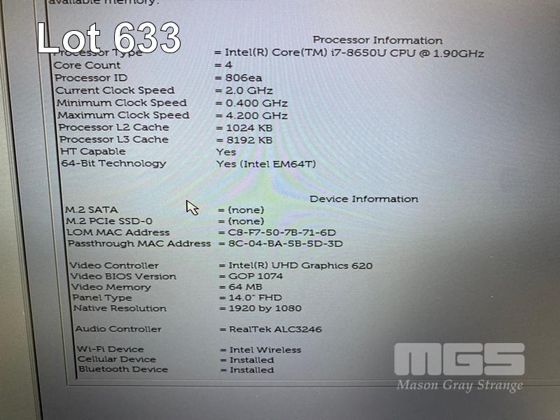 LAPTOP, DELL LATITUDE 5490, CORE i7 8650U (8TH GEN) @ 1.9GHz, 32GB DDR4 RAM, NO HDD, 14" WIDESCREEN & POWER SUPPLY S/N:513KRV2