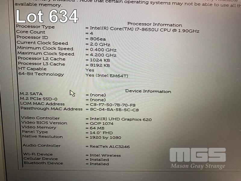 LAPTOP, DELL LATITUDE 5490, CORE i7 8650U (8TH GEN) @ 1.9GHz, 32GB DDR4 RAM, NO HDD, 14" WIDESCREEN & POWER SUPPLY S/N:8Z2KRV2