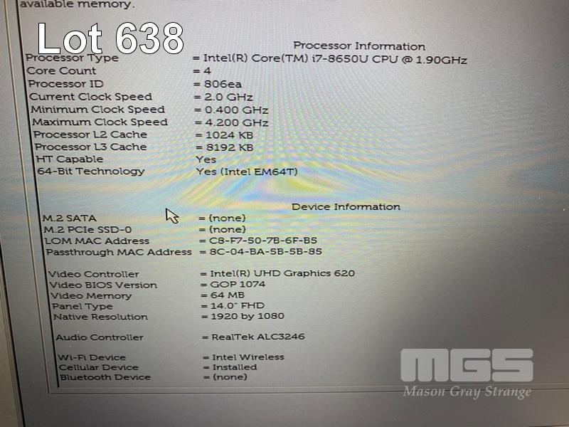 LAPTOP, DELL LATITUDE 5490, CORE i7 8650U (8TH GEN) @ 1.9GHz, 32GB DDR4 RAM, NO HDD, 14" WIDESCREEN & POWER SUPPLY (NOTE: BATTERY COMMUNICATIONS ERROR) S/N:9X3KRV2