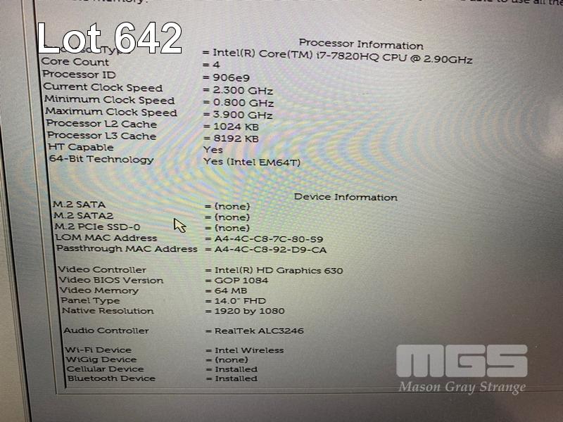 LAPTOP, DELL LATITUDE 5480, CORE i7 7820HQ (7TH GEN) @ 2.9GHz, 16GB DDR4 RAM, NO HDD, 14" WIDESCREEN & POWER SUPPLY (NOTE: MARKS ON SCREEN) S/N:J0WV3M2