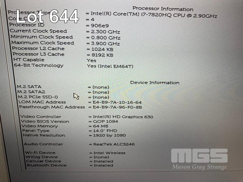LAPTOP, DELL LATITUDE 5480, CORE i7 7820HQ (7TH GEN) @ 2.9GHz, 32GB DDR4 RAM, NO HDD, 14" WIDESCREEN & POWER SUPPLY (NOTE: BATTERY NOT HOLDING CHARGE) S/N:GSCSRQ2