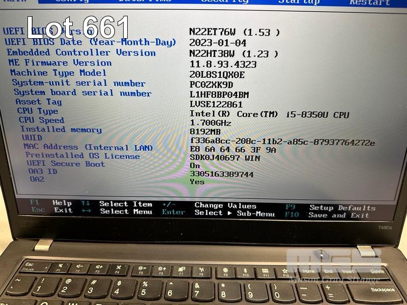 LAPTOP, LENOVO THINKPAD T480s, TYPE 20L8, CORE i5 8350U (8TH GEN) @ 1.7GHz, 8GB DDR4 RAM, 256GB NVMe M.2 SSD, 14" TOUCHSCREEN (1920x1080), INTEL HD VIDEO, Wi-Fi, BLUETOOTH, WINDOWS 11 PRO INSTALLED (NO USB-C POWER SUPPLY) (NOTE: KEYBOARD FAULT - KEYS HARD TO PRESS, MARKS ON SCREEN) S/N:PC0ZXK9D