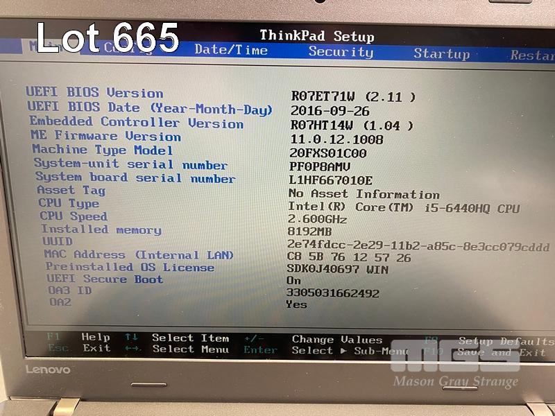 LAPTOP, LENOVO THINKPAD T460p, TYPE 20FX, CORE i5 6440HQ (6TH GEN) @ 2.6GHz, 8GB DDR3 RAM, 512GB SSD, 14" WIDESCREEN (1920x1080), INTEL HD VIDEO, Wi-Fi, BLUETOOTH, WINDOWS 10 PRO INSTALLED & POWER SUPPLY S/N:PF0P8AMV