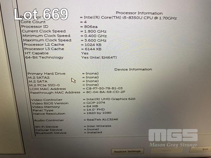 LAPTOP, DELL LATITUDE 5490, CORE i5 8350U (8TH GEN) @ 1.7GHz, 8GB DDR4 RAM, NO HDD, 14" WIDESCREEN & POWER SUPPLY S/N:5SK0QV2