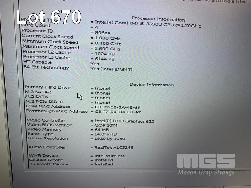 LAPTOP, DELL LATITUDE 5490, CORE i5 8350U (8TH GEN) @ 1.7GHz, 8GB DDR4 RAM, NO HDD, 14" WIDESCREEN & POWER SUPPLY S/N:7Z65YT2