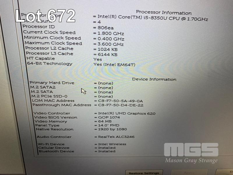 LAPTOP, DELL LATITUDE 5490, CORE i5 8350U (8TH GEN) @ 1.7GHz, 8GB DDR4 RAM, NO HDD, 14" WIDESCREEN & POWER SUPPLY S/N:4CZYXT2