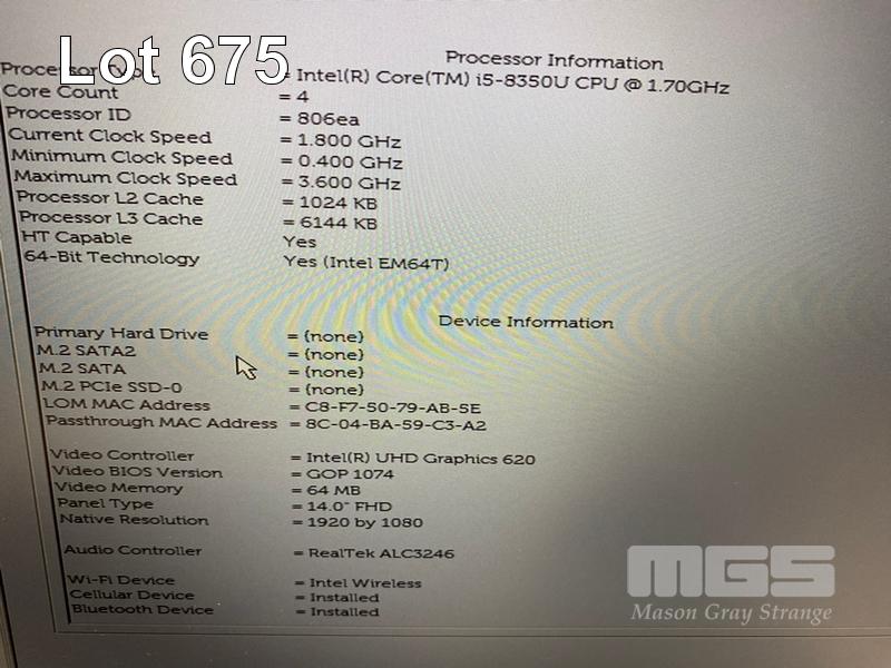 LAPTOP, DELL LATITUDE 5490, CORE i5 8350U (8TH GEN) @ 1.7GHz, 8GB DDR4 RAM, NO HDD, 14" WIDESCREEN & POWER SUPPLY S/N:22L0QV2