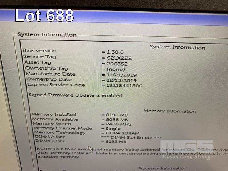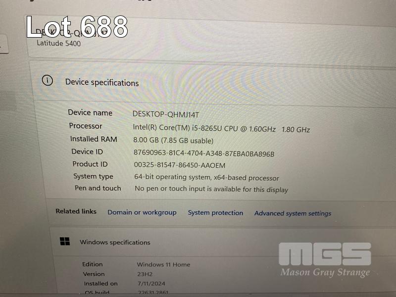 LAPTOP, DELL LATITUDE 5400, CORE i5 8265U (8TH GEN) @ 1.6GHz, 8GB DDR4 RAM, 512GB NVMe M.2 SSD, 14" WIDESCREEN (1920x1080), INTEL UHD GRAPHICS 620, Wi-Fi, BLUETOOTH, WINDOWS 11 HOME INSTALLED (NO POWER SUPPLY) (NOTE: MARKS ON SCREEN, BATTERY NOT HOLDING CHARGE, BATTERY SWOLLEN) S/N:62LX2Z2
