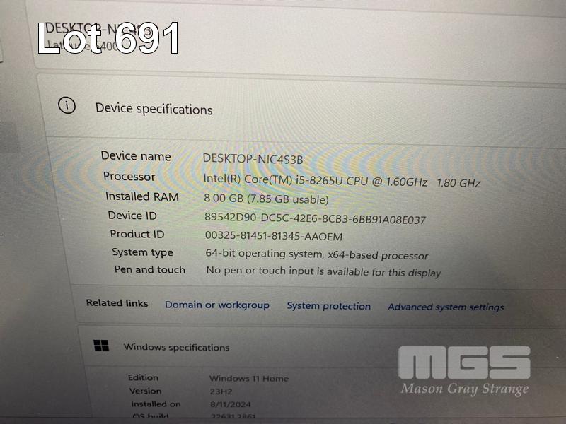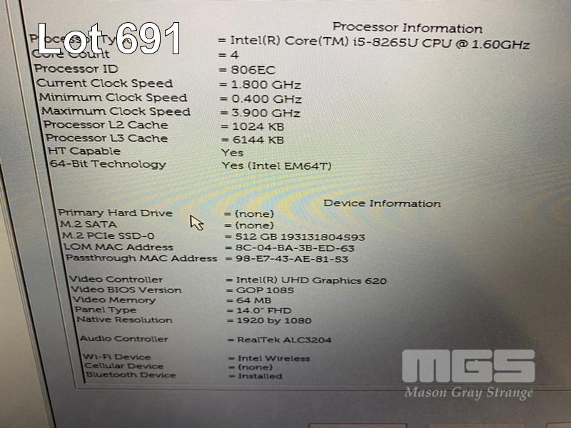 LAPTOP, DELL LATITUDE 5400, CORE i5 8265U (8TH GEN) @ 1.6GHz, 8GB DDR4 RAM, 512GB NVMe M.2 SSD, 14" WIDESCREEN (1920x1080), INTEL UHD GRAPHICS 620, Wi-Fi, BLUETOOTH, WINDOWS 11 HOME INSTALLED (NO POWER SUPPLY) (NOTE: MINOR MARKS ON SCREEN, RUBBER LOOSE ON SIDE OF SCREEN) S/N:9M5JZY2