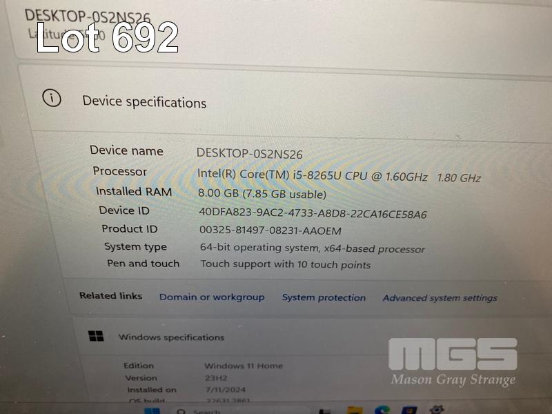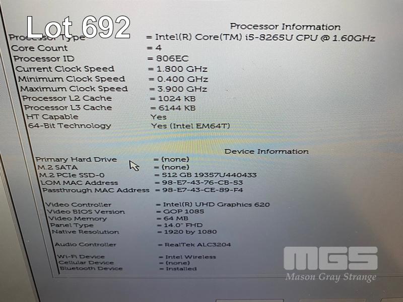 LAPTOP, DELL LATITUDE 5400, CORE i5 8265U (8TH GEN) @ 1.6GHz, 8GB DDR4 RAM, 512GB NVMe M.2 SSD, 14" WIDESCREEN (1920x1080), INTEL UHD GRAPHICS 620, Wi-Fi, BLUETOOTH, WINDOWS 11 HOME INSTALLED (NO POWER SUPPLY) (NOTE: MARKS ON SCREEN, BATTERY SWOLLEN) S/N:GWB01Z2