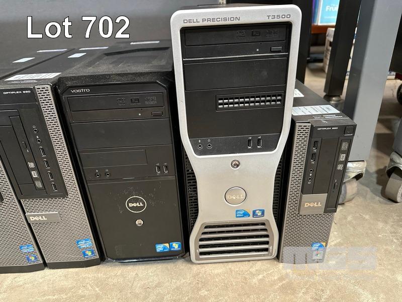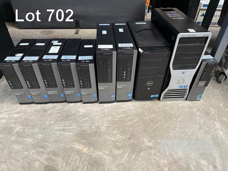 10 x COMPUTERS INC. - DELL OPTIPLEX 9020 SFF, CORE i7 4790 @ 3.6GHz, 16GB RAM, 256GB SSD - DELL OPTIPLEX 9020 SFF, CORE i7 4790 @ 3.6GHz, 8GB RAM, 256GB SSD - DELL OPTIPLEX 9020 SFF, CORE i7 4770 @ 3.4GHz, 8GB RAM, 128GB SSD - DELL OPTIPLEX 9020 SFF, CORE i5 4590 @ 3.3GHz, 8GB RAM, 250GB SSD - DELL OPTIPLEX 9020 SFF, CORE i5 4590 @ 3.3GHz, 8GB RAM, 128GB SSD - DELL OPTIPLEX 9010, CORE i5 3550 @ 3.3GHz, 8GB RAM, 250GB HDD - DELL OPTIPLEX 990, CORE i5 2500 @ 3.3GHz, 4GB RAM, 250GB HDD - DELL VOSTRO 230, CORE 2 DUO E7400 @ 2.93GHz, 4GB RAM, 320GB HDD - DELL PRECISION T3500, XEON W3530 @ 2.8GHz, 6GB RAM, 250GB SSD - DELL OPTIPLEX 980 SFF, CORE i5 670 @ 3.47GHz, 4GB RAM, 160GB HDD (NO CABLES) S/N:BKLMH62, 1Z2ZY42, 3PJ8F22, 3ZBCR42, D50N252, 2YT1F2S, 2TPCC2S, 4MTCKQ1, J216C2S, HXKD62S