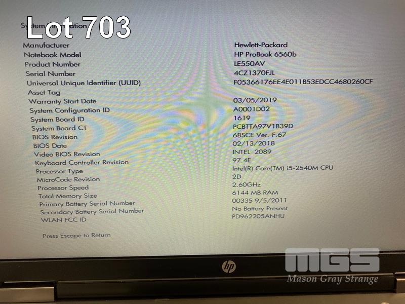 5 x LAPTOPS INC. - HP PROBOOK 6560b, CORE i5 2540M @ 2.6GHz, 16GB RAM, 240GB SSD - HP PROBOOK 6560b, CORE i5 2540M @ 2.6GHz, 4GB RAM, 240GB SSD - HP PROBOOK 6560b, CORE i5 2540M @ 2.6GHz, 6GB RAM, 250GB SATA HDD - HP PROBOOK 6560b, CORE i5 2540M @ 2.6GHz, 8GB RAM, 250GB SATA HDD - HP ELITEBOOK 8570p, CORE i7 3720QM @ 2.6GHz, 8GB RAM, 250GB SATA HDD WITH POWER SUPPLIES S/N:5CB1514R7B, 5CB1500B4K, 4CZ1370FJL, 4CZ1370FKQ, 5CB31214QQ