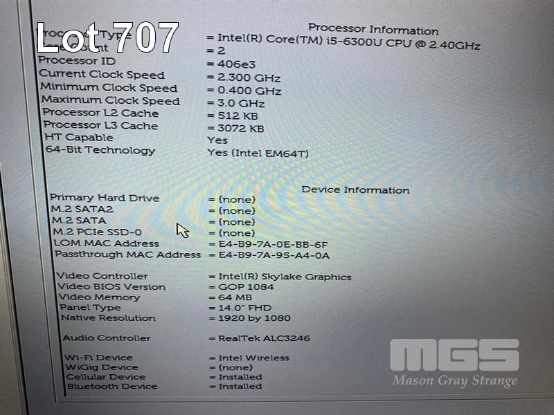 LAPTOP, DELL LATITUDE 5480, CORE i5 6300U (6TH GEN) @ 2.4GHz, 8GB DDR4 RAM, NO HDD, 14" WIDESCREEN & POWER SUPPLY S/N:J1RMRQ2