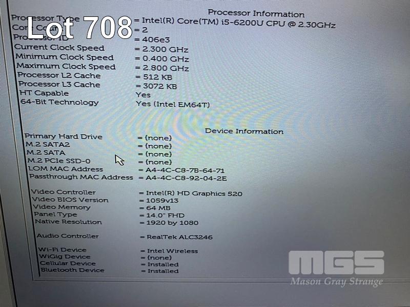 LAPTOP, DELL LATITUDE 5480, CORE i5 6200U (6TH GEN) @ 2.3GHz, 8GB DDR4 RAM, NO HDD, 14" WIDESCREEN & POWER SUPPLY S/N:7JGH3M2