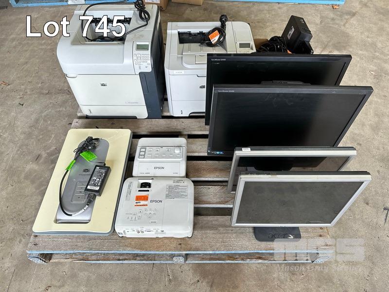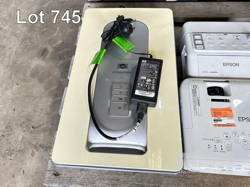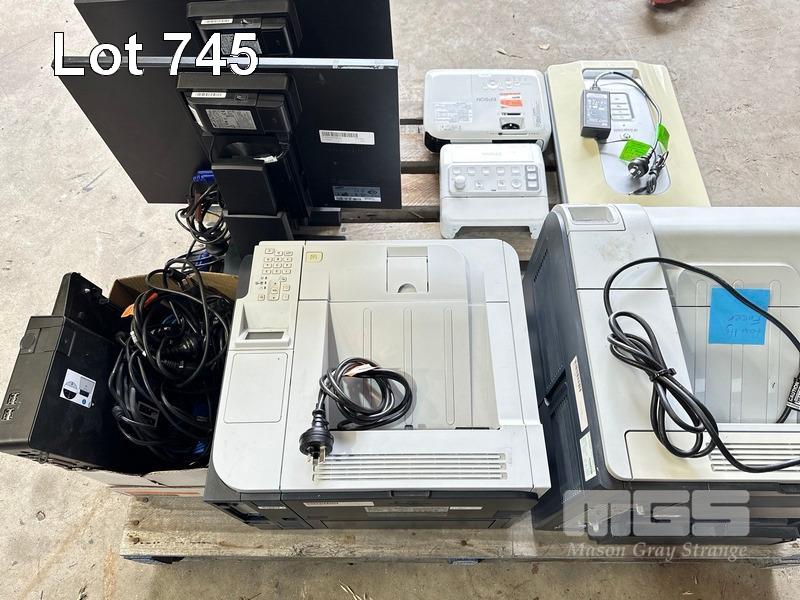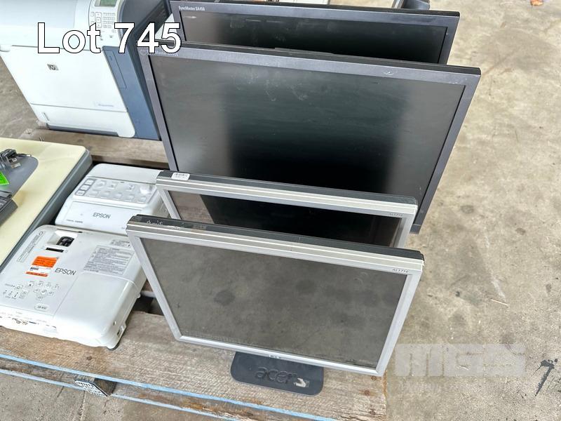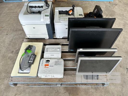 2 x HP LASERJET PRINTERS (1 x FAULTY FUSER), EPSON EB-W32 PROJECTOR (FAULTY), 2 x SAMSUNG LCD MONITORS, 2 x ACER LCD MONITORS, HP SCANEJET G4010 FLATBED SCANNER