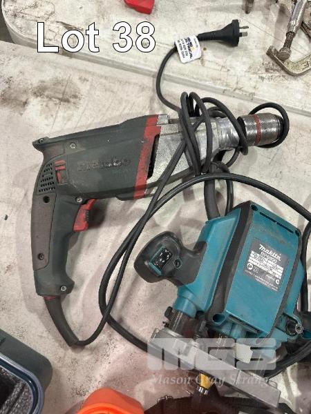 MAKITA ROUTER, RPO-900 & METABO IMPACT DRILL, KEYLESS CHUCK, 240V