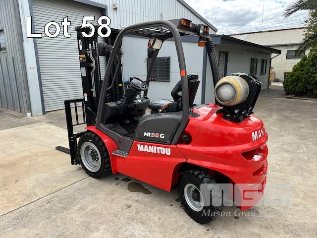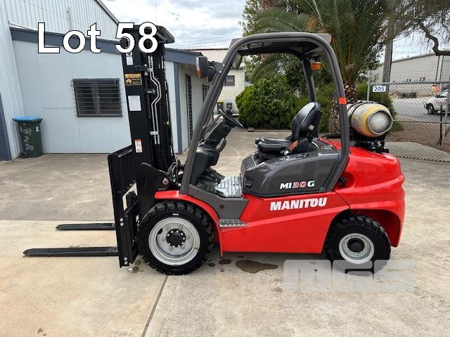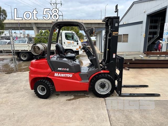 FORKLIFT, MANITOU M30G DOM: 07/2020 S/NO: MAN00000J00883911 3 TONNE 3 STAGE MAST LPG, SIDE SHIFT, SOLID TYRES HOURS: 153.3 SHOWING LIGHTS, REV BUZZER NEAR NEW CONDITION