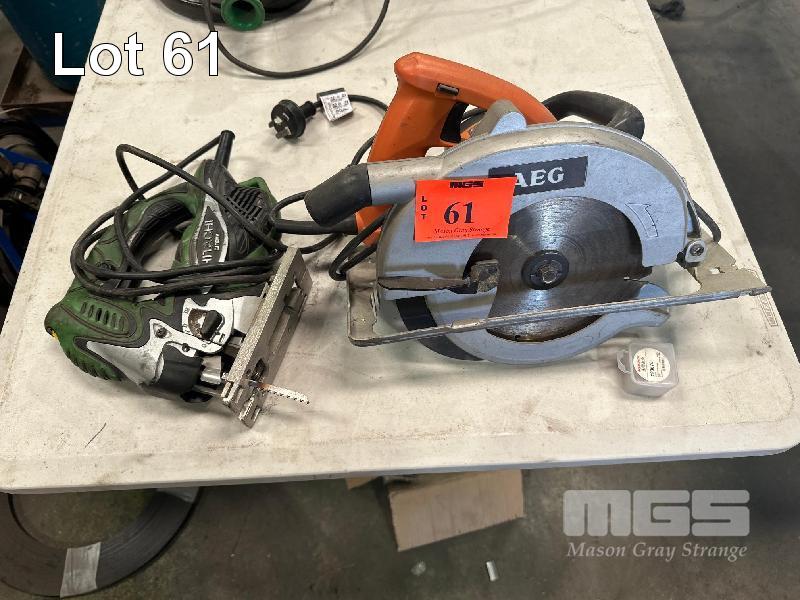 AEG CIRCULAR SAW MOD: CS66 7" & HITACHI JIGSAW, CJ110MV 240V