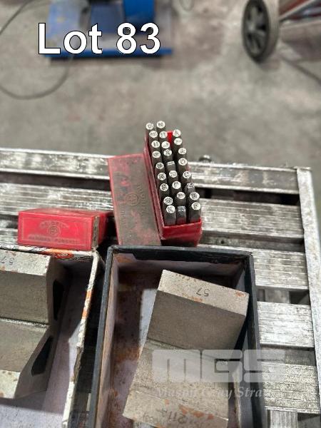 PAIR CAST IRON V/BLOCKS, 75 x 50 x 50mm & SET LETTER & NUMBER PUNCHES, 3mm