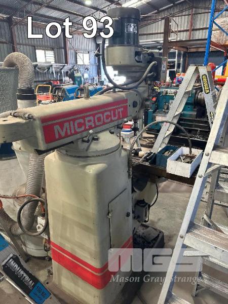 MICROCUT TURRET HEAD MILL 4' x 10" TABLE POWER TO X. SPEED: 60-3600 LOW/HIGH SPEED CONTROL FW/REV SWITCH COOLANT SYSTEM DRILL CHUCK & VICE ASSORTED COLLETS ES FITTED 415V, 2HP