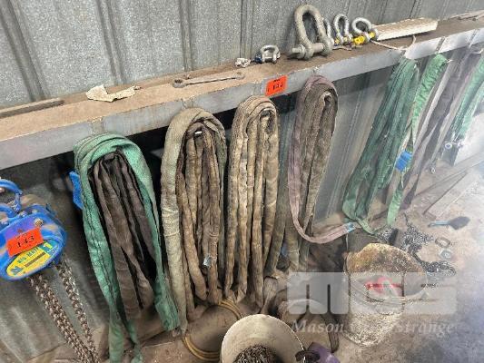 20 (APPROX) x ASSORTED LIFTING SOFT SLINGS WITH 7 x SHACKLES