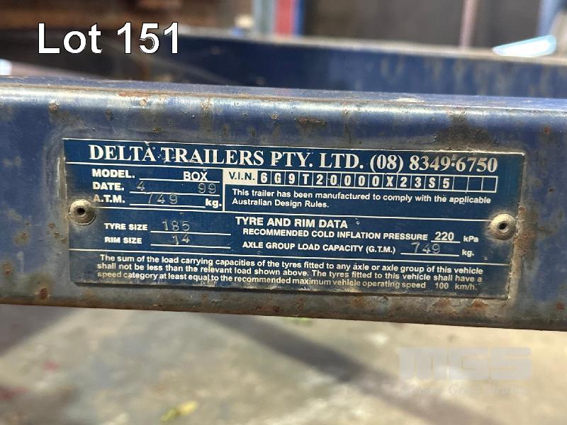 04/1999 BOX TRAILER, 6x4' REG: YCK 880 VIN: 6G9T2000X2355 5 STUD RIMS, 185 x 14 TYRES WITH SPARE RIMS AND TYRES, 749kg LOAD RATING .