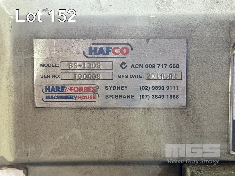 HORIZONTAL BANDSAW, HAFCO MOD: BS-13DS DOM: 2011 WIT IN/OUT FEED ROLLERS SWIVEL VICE 415V