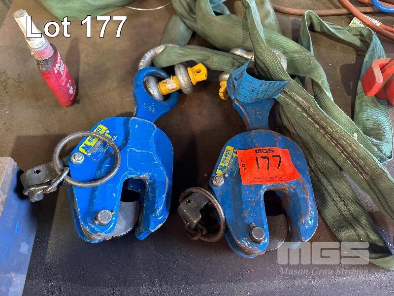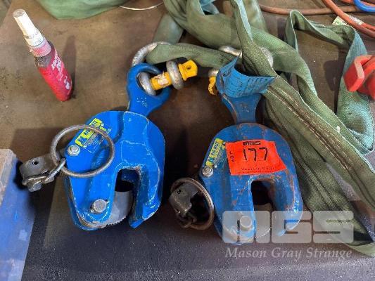 PAIR PLATE GRABS, NOYES BIG MATE 1 TONNE EACH WITH 2 TONNE SLING & SHACKLE