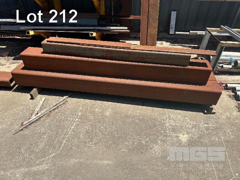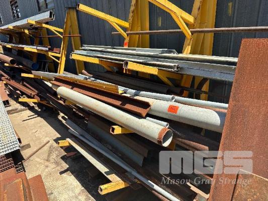 ASSORTED STEEL OFFCUTS, PIPE, TUBE, FLATS, CHANNEL & 9 x SECTIONS OFF CUTS LARGE RHS & SHS ON GROUND