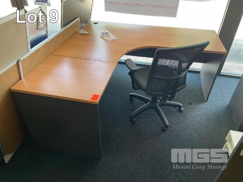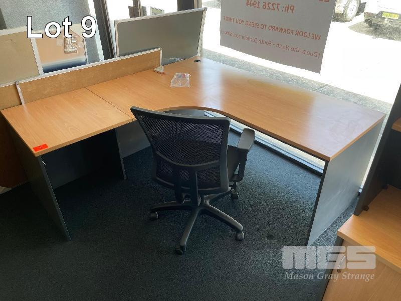 DESK, L-SHAPE, BEECH STORM LAMINATE, (CNR)