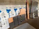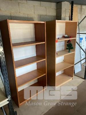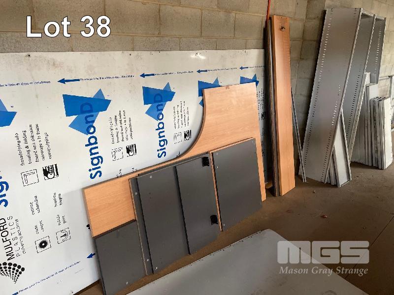 PAIR TIMBER LAMINATE SHELVES, 1800 x 900mm & DISMANTLED CORNER DESK, 100 x 1800mm