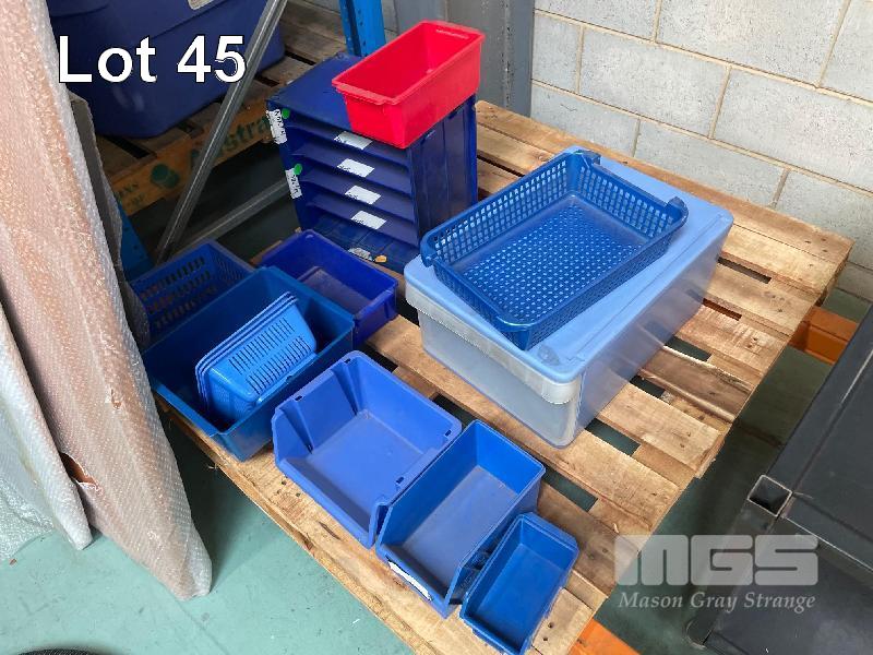 PALLET OF SLIP PAPER DRAWERS, STAINLESS STEEL CABINET, ETC