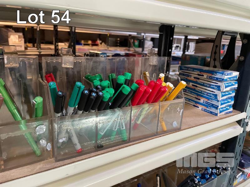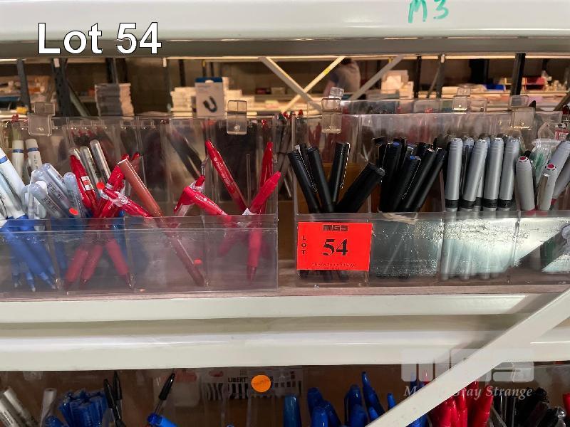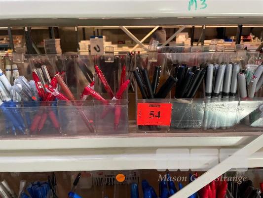 1 x SIDE ASSORTED MARKING PENS INCLUDING ARTLINE, BIC, FELT TIP, GEL, PERMANENT, HIGHLIGHTERS, FINE LINE, ETC 1 x SHELF
