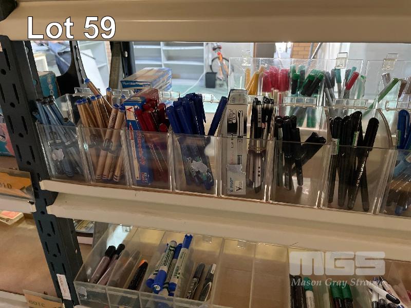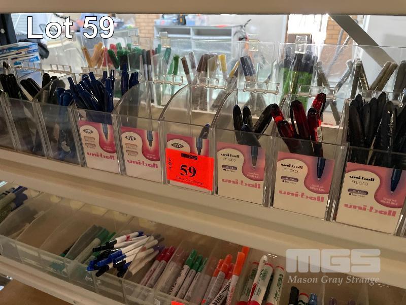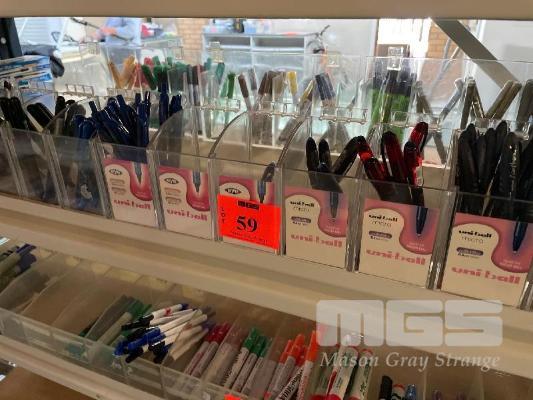 PENS, MICRO, FELT TIP, TEXTAS, UNI BALL, ETC HALF SHELF